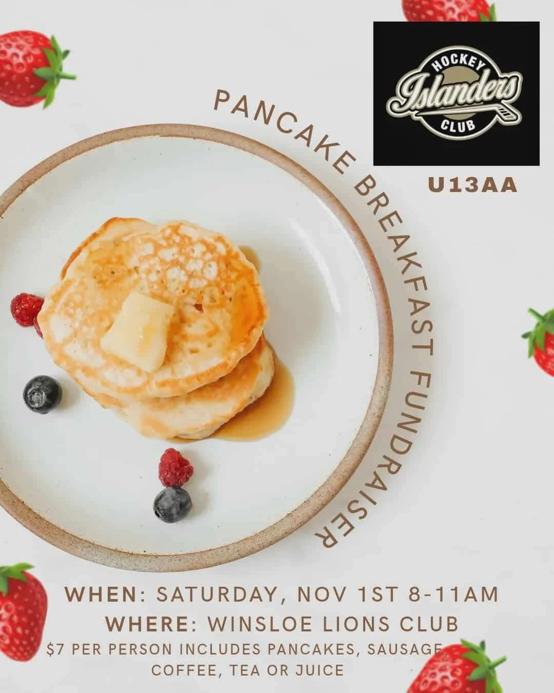 Join us Saturday, November 1st from 8–11 a.m. at the Winsloe Lions Club in support of the Greater Charlottetown Minor Hockey Association U13 AA hockey team!